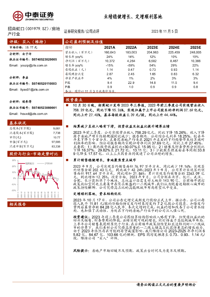 中泰证券:招商蛇口(001979)-业绩稳健增长、定增顺利落地.pdf