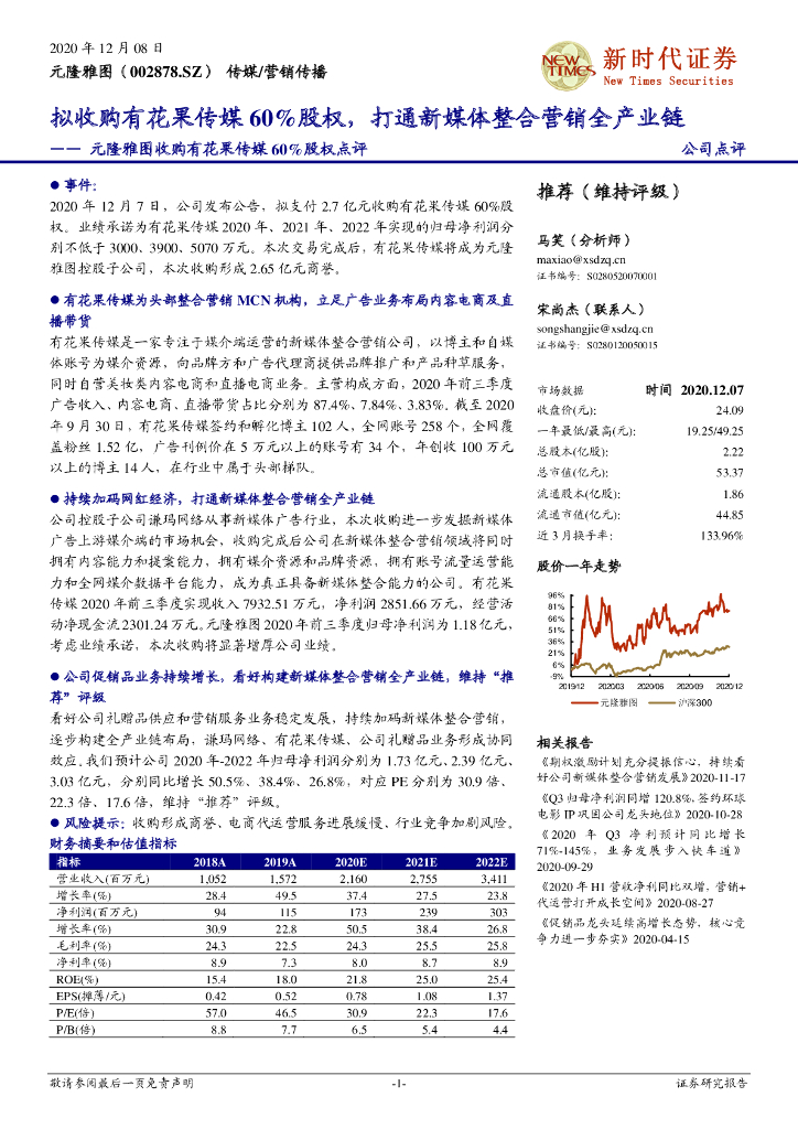 新时代证券:元隆雅图收购有花果传媒60%股权点评:拟收购有花果传媒60%股权,打通新媒体整合营销全产业链.pdf