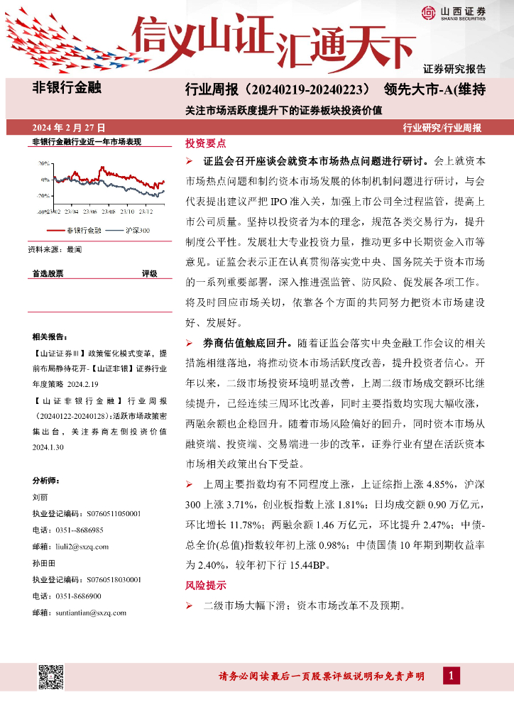 山西证券:非银行金融行业周报:关注市场活跃度提升下的证券板块投资价值.pdf