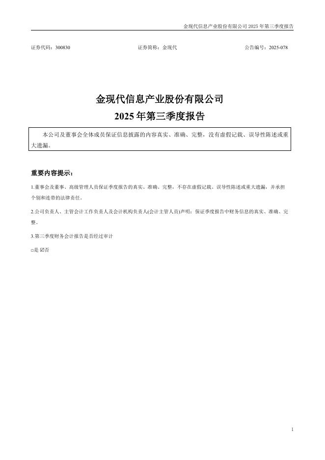 300830-金现代:2025年三季度报告.pdf