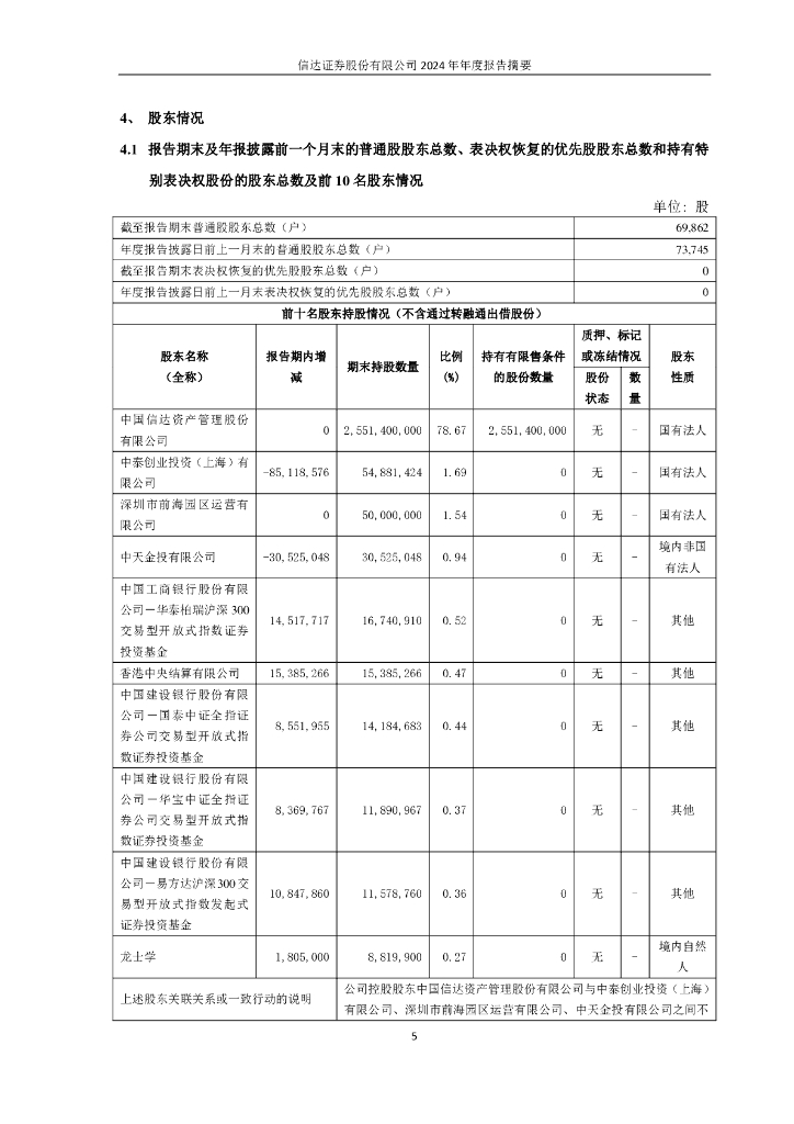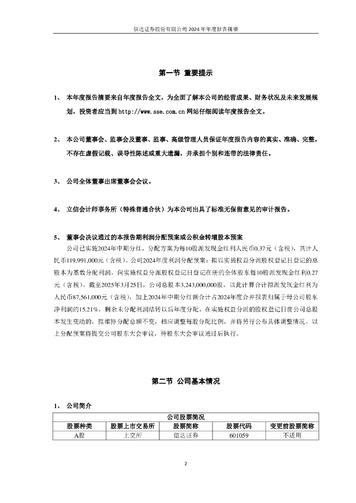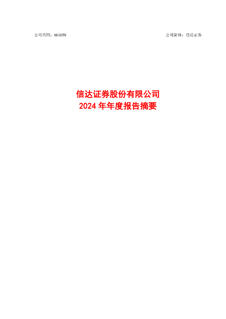 601059-信达证券:信达证券股份有限公司2024年年度报告摘要.pdf