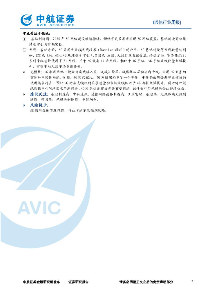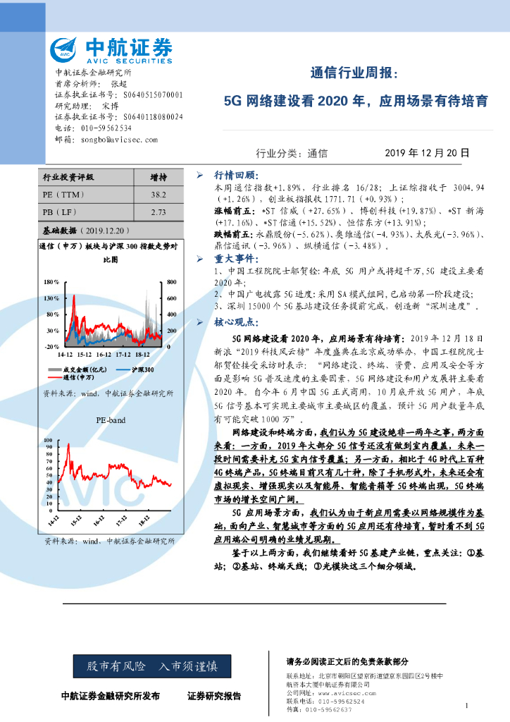 中航证券:通信行业周报:5G网络建设看2020年,应用场景有待培育.pdf