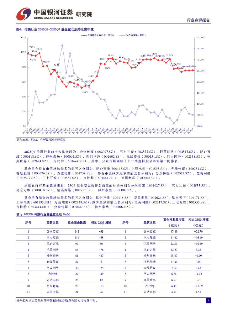 中国银河:传媒互联网行业:2023Q4传媒行业基金持仓分析-配置比重下降,个股偏好持续分化.pdf