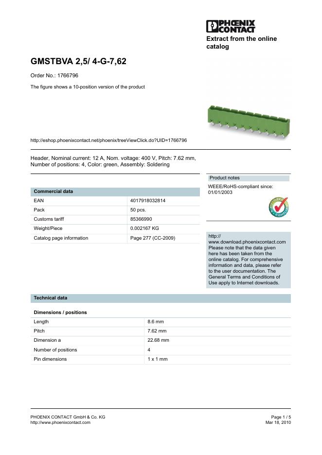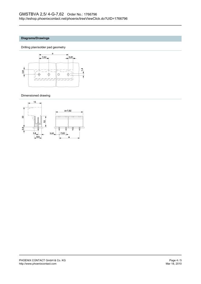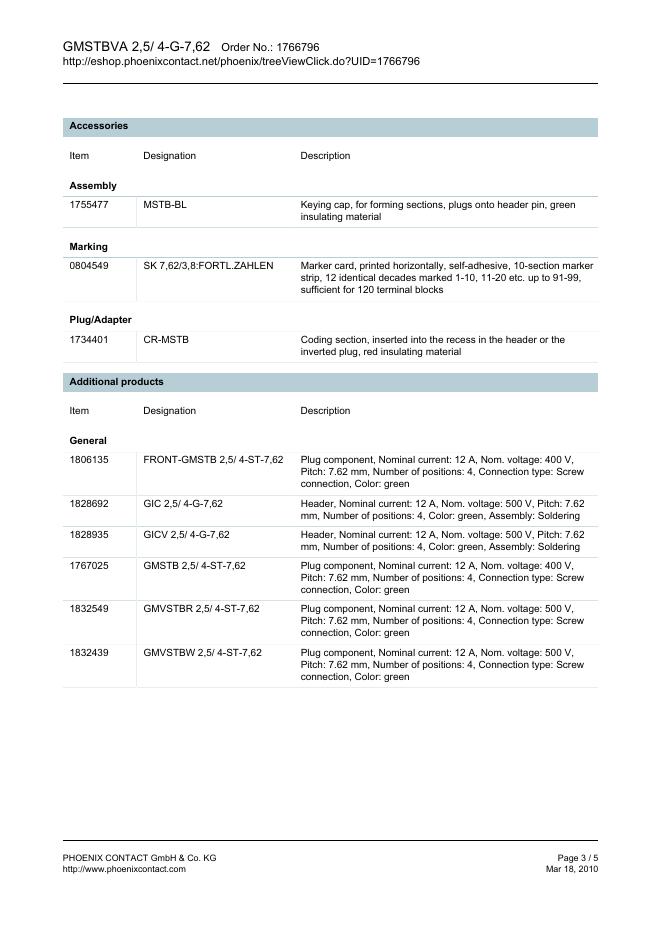 PHOENIX CONTACT GMSTBVA 2,5/ 4-G-7,62 Order No.: 1766796 The figure shows a 10-position version of the product 数据手册.pdf
