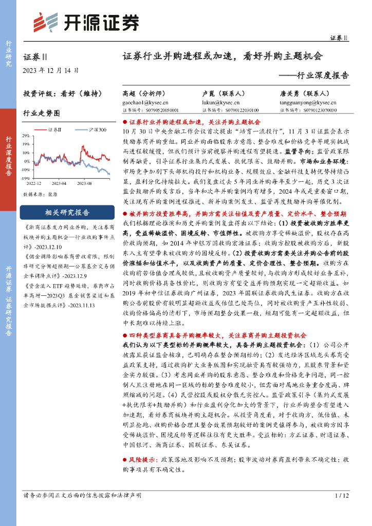 开源证券:证券Ⅱ行业深度报告:证券行业并购进程或加速,看好并购主题机会.pdf