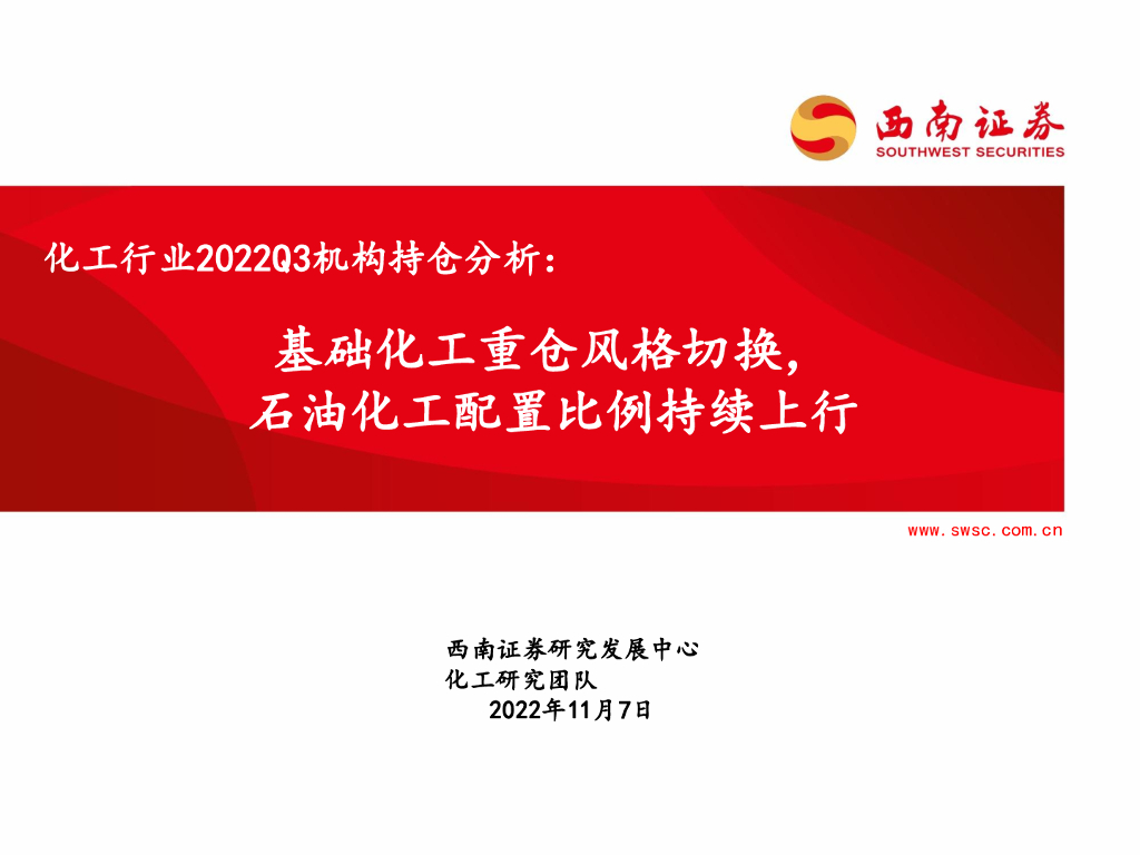 西南证券:化工行业2022Q3机构持仓分析:基础化工重仓风格切换,石油化工配置比例持续上行.pdf