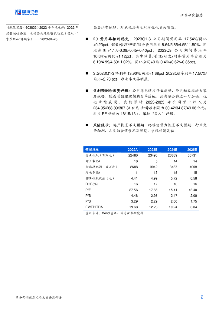 国海证券:欧派家居(603833)-2023Q3业绩点评:Q3业绩表现超预期,盈利能力优化.pdf