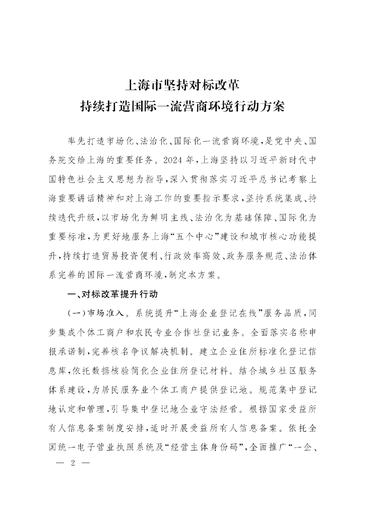 上海市坚持对标改革持续打造国际一流营商环境行动方案.pdf
