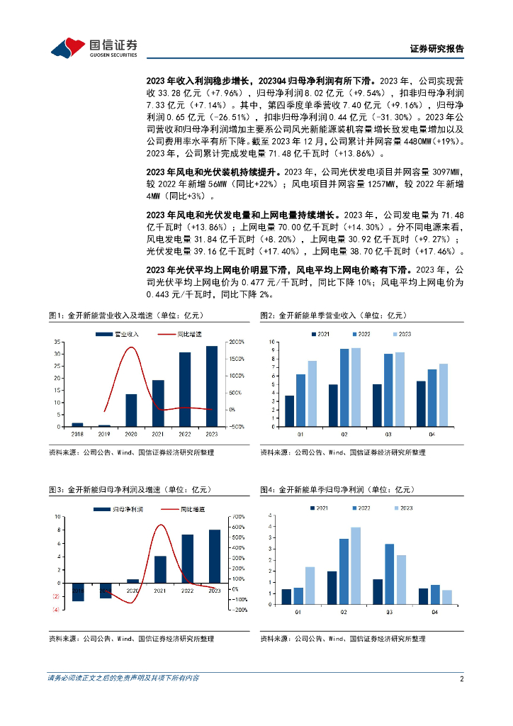 国信证券:金开新能(600821)-2023年公司业绩平稳增长,新能源装机稳步增加.pdf