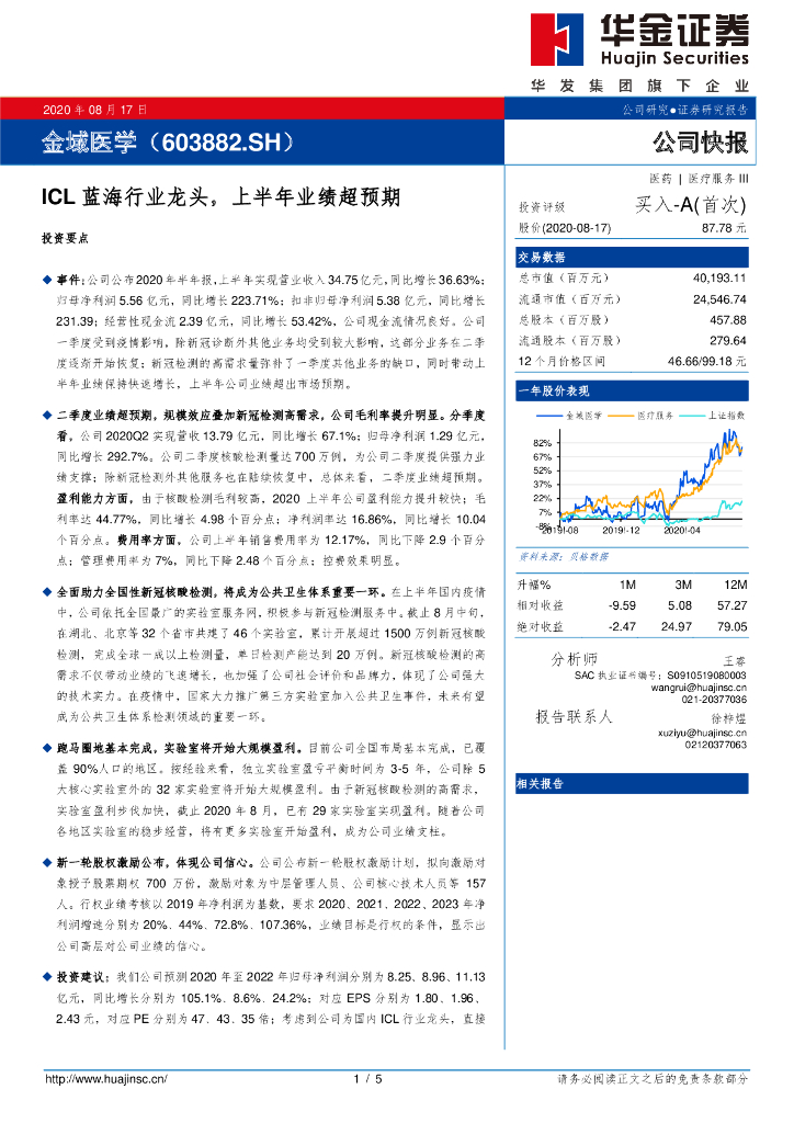 华金证券:金域医学(603882)-ICL蓝海行业龙头,上半年业绩超预期.pdf