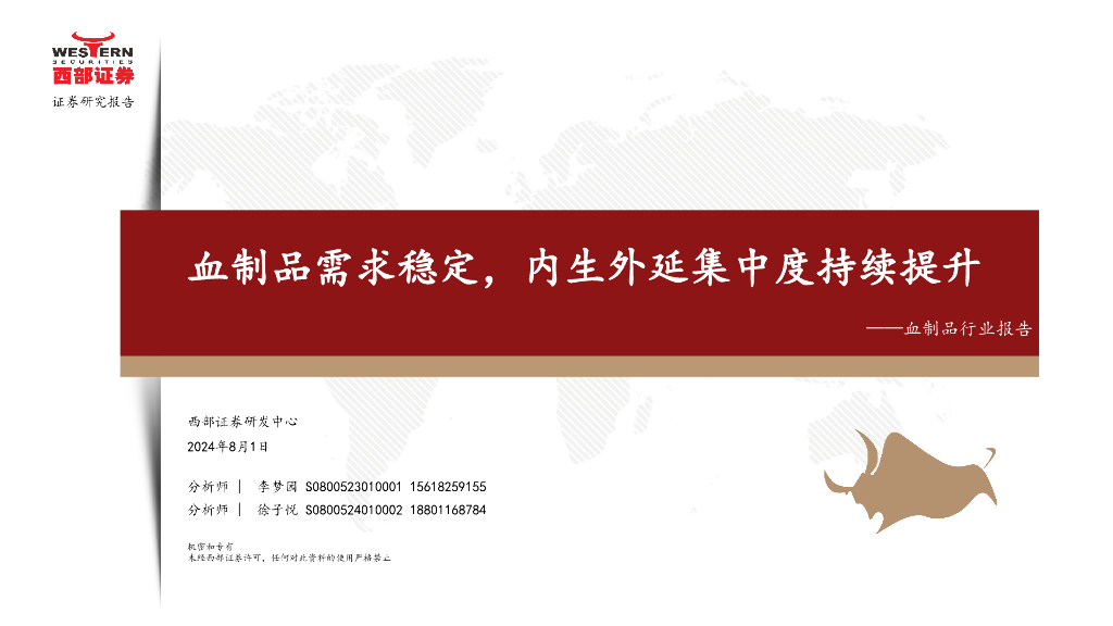 西部证券:血制品行业报告:血制品需求稳定,内生外延集中度持续提升.pdf