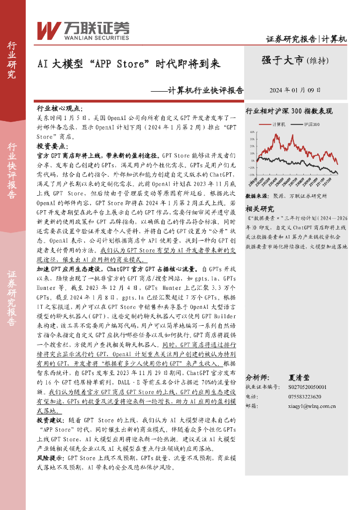 万联证券:计算机行业快评报告:AI大模型“APP Store”时代即将到来.pdf