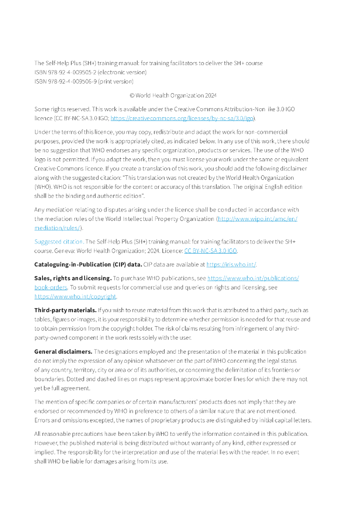 WHO世界卫生组织:2024年Self-Help Plus(SH+)培训手册:供培训主持人教授SH+课程(英文版).pdf