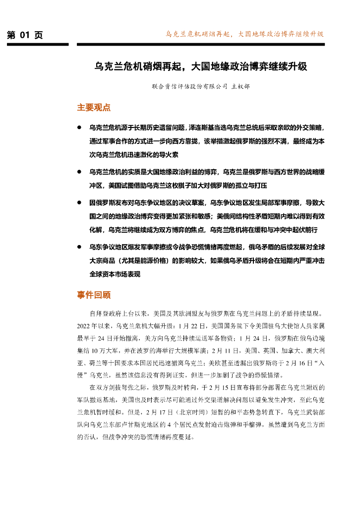 联合资信:乌克兰危机硝烟再起,大国地缘政治博弈继续升级.pdf