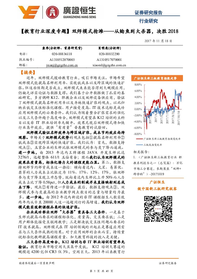 广证恒生证券研究所:【教育行业深度专题】双师模式抢滩--从鲶鱼到大杀器,决胜2018.pdf