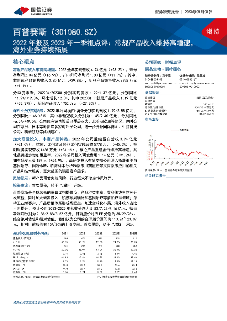 国信证券:百普赛斯(301080)-2022年报及2023年一季报点评:常规产品收入维持高增速,海外业务持续拓展.pdf