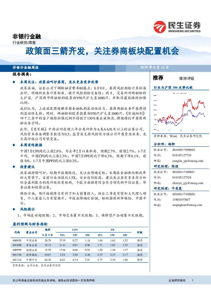 民生证券:非银行金融行业周报:政策面三箭齐发,关注券商板块配置机会.pdf