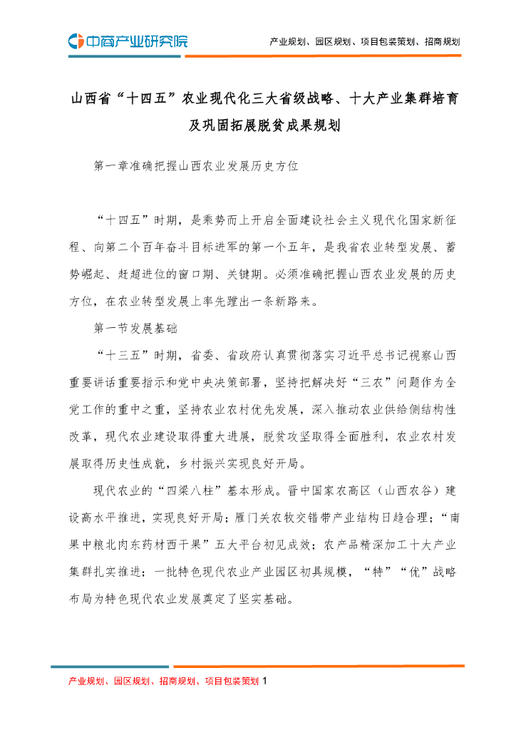 山西省“十四五”农业现代化三大省级战略、十大产业集群培育及巩固拓展脱贫成果规划.pdf