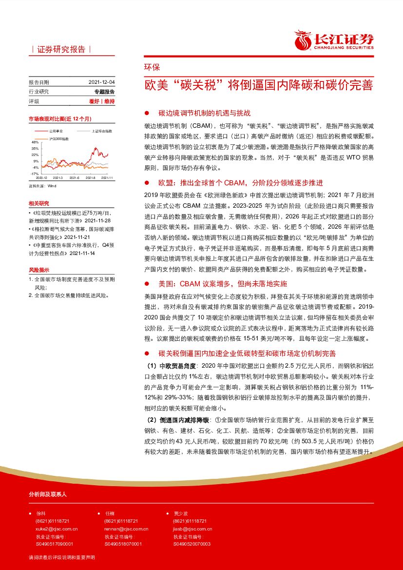 长江证券:欧美“碳关税”将倒逼国内降碳和碳价完善.pdf