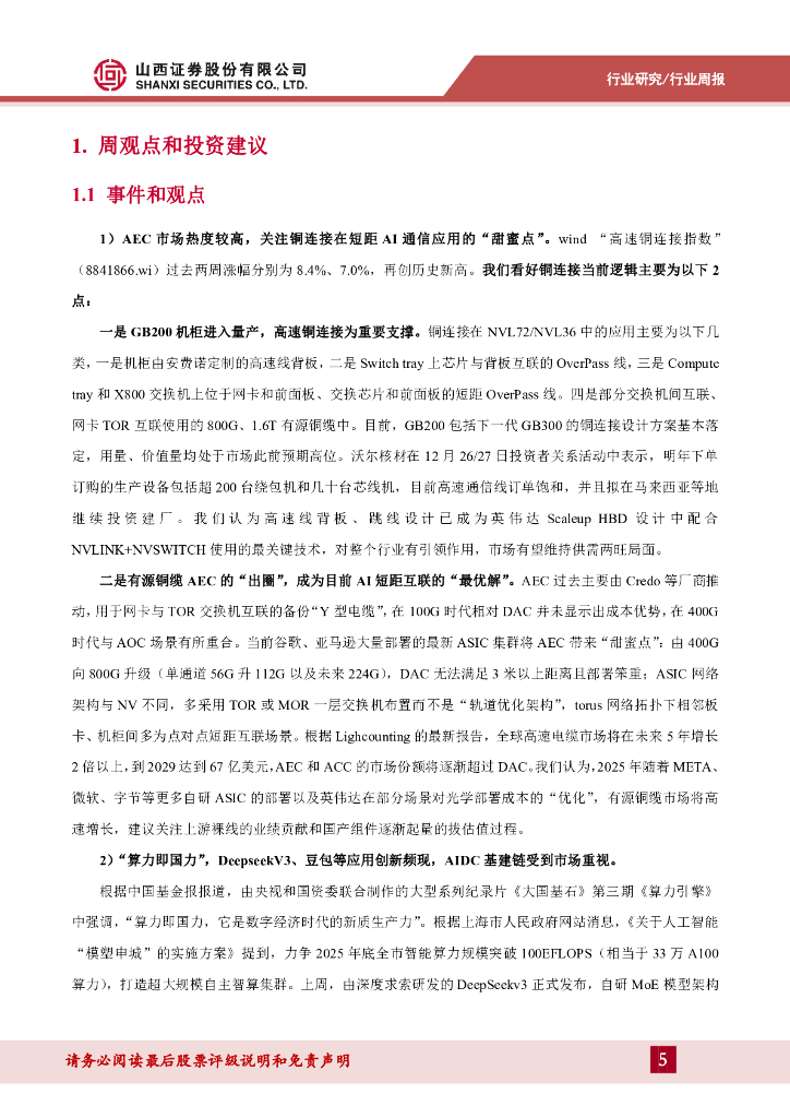 山西证券:通信周跟踪:AEC处于短距AI应用“甜蜜期”,国内AIDC建设持续加码.pdf