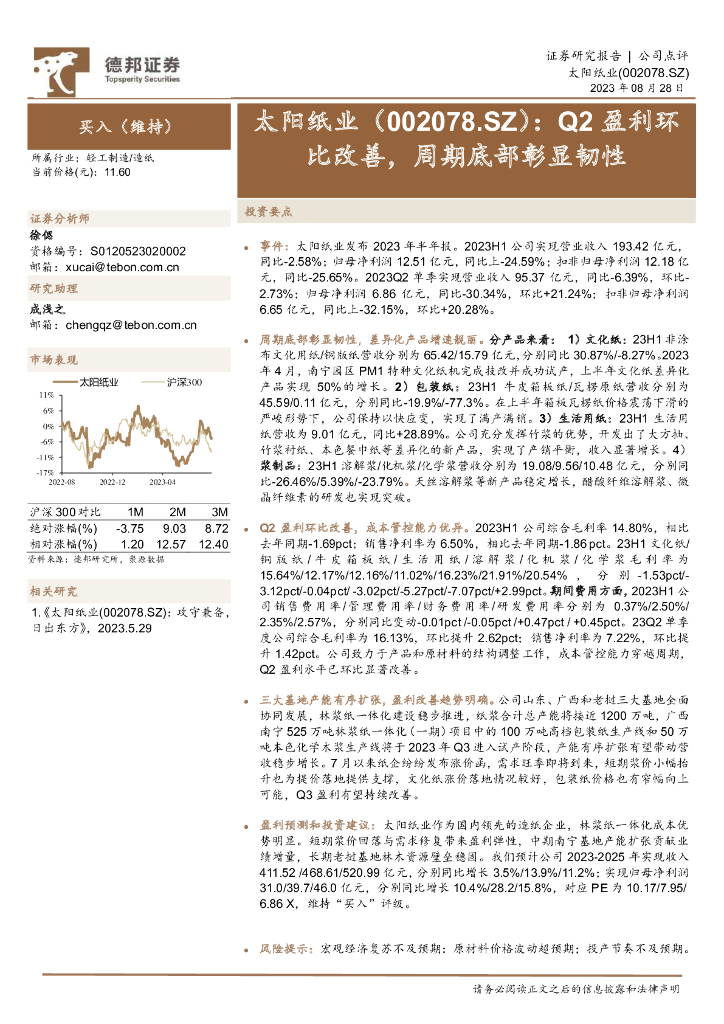 德邦证券:太阳纸业(002078)-Q2盈利环比改善,周期底部彰显韧性.pdf