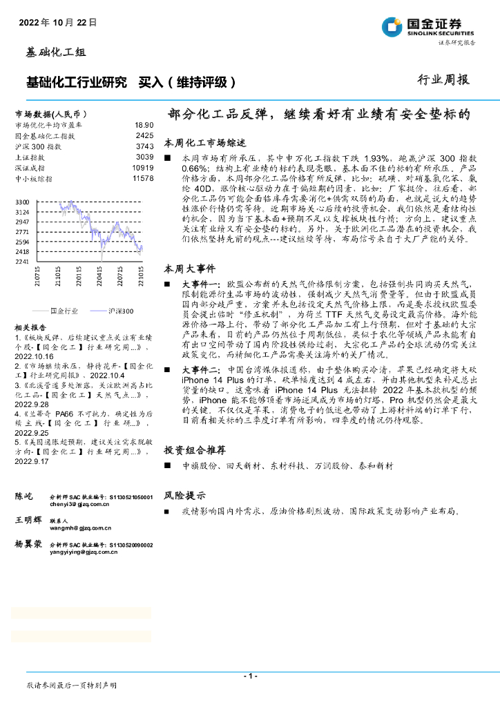 国金证券:基础化工行业研究:部分化工品反弹,继续看好有业绩有安全垫标的.pdf