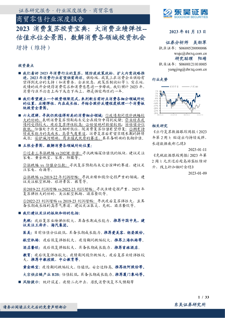 东吴证券:2023消费复苏投资宝典:大消费业绩弹性--估值水位全景图,数解消费各领域投资机会.pdf
