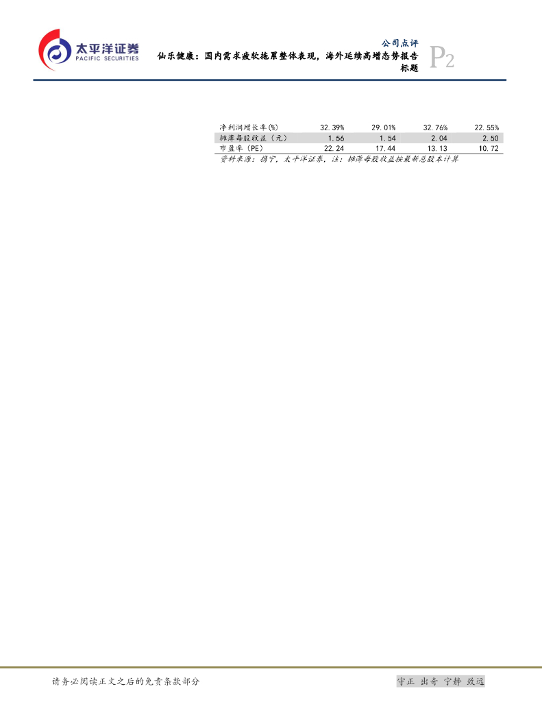 太平洋证券:仙乐健康:国内需求疲软拖累整体表现,海外延续高增态势.pdf
