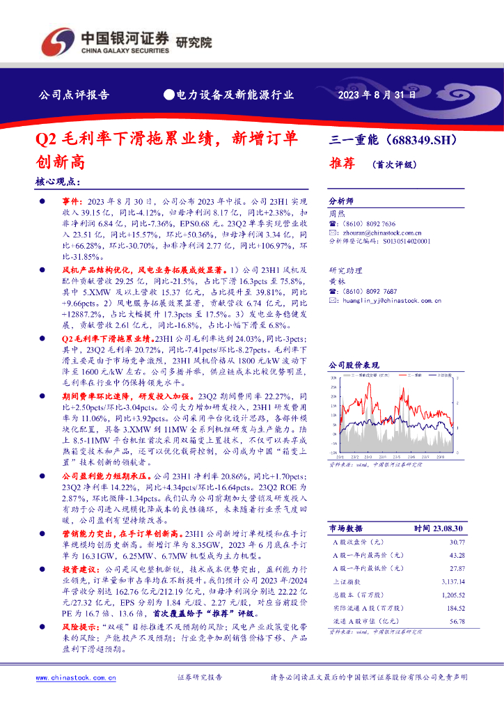 中国银河:三一重能(688349)-Q2毛利率下滑拖累业绩,新增订单创新高.pdf