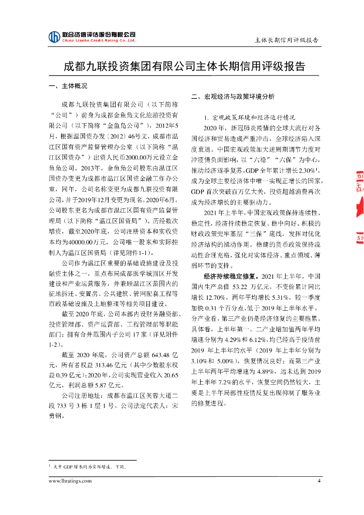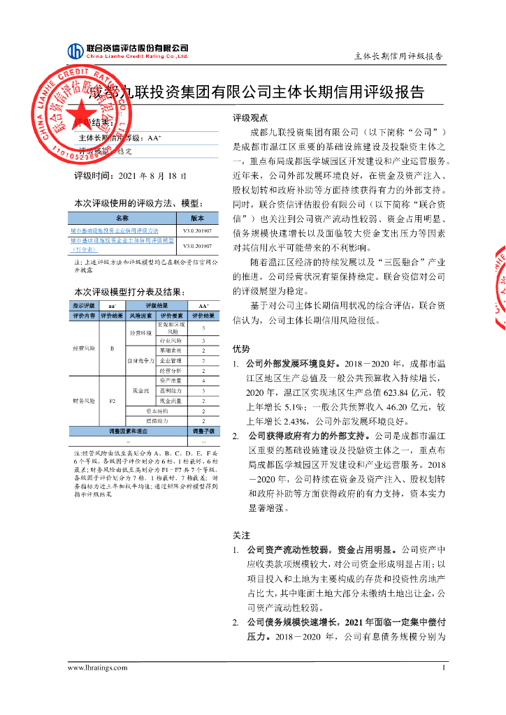 联合资信:成都九联投资集团有限公司主体信用评级报告和跟踪评级安排.pdf