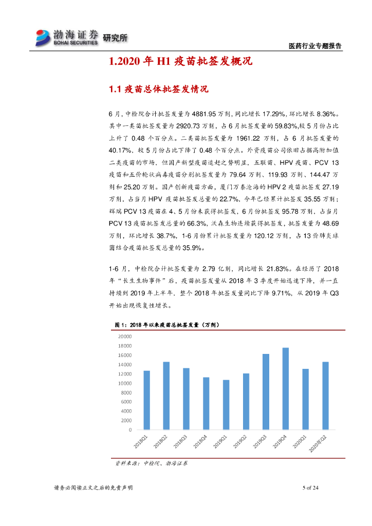 渤海证券:医药行业专题报告:2020年H1疫苗批签发:消费升级,新型疫苗渗透率持续提升.pdf