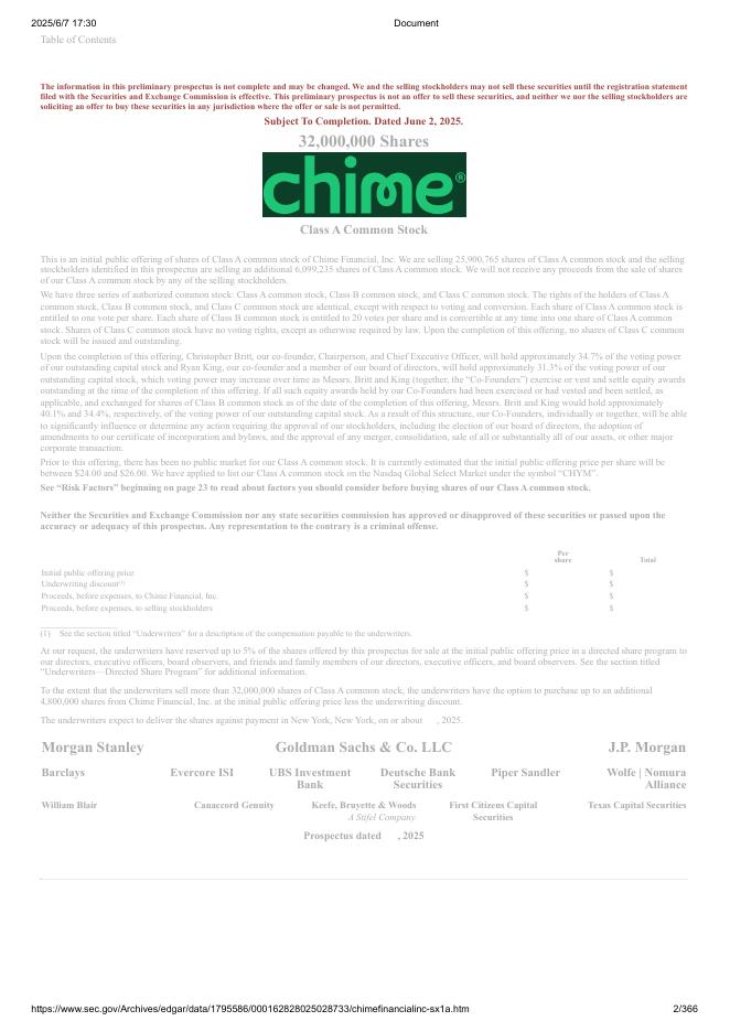Chime Financial, Inc.美股纳斯达克IPO上市招股说明书.pdf