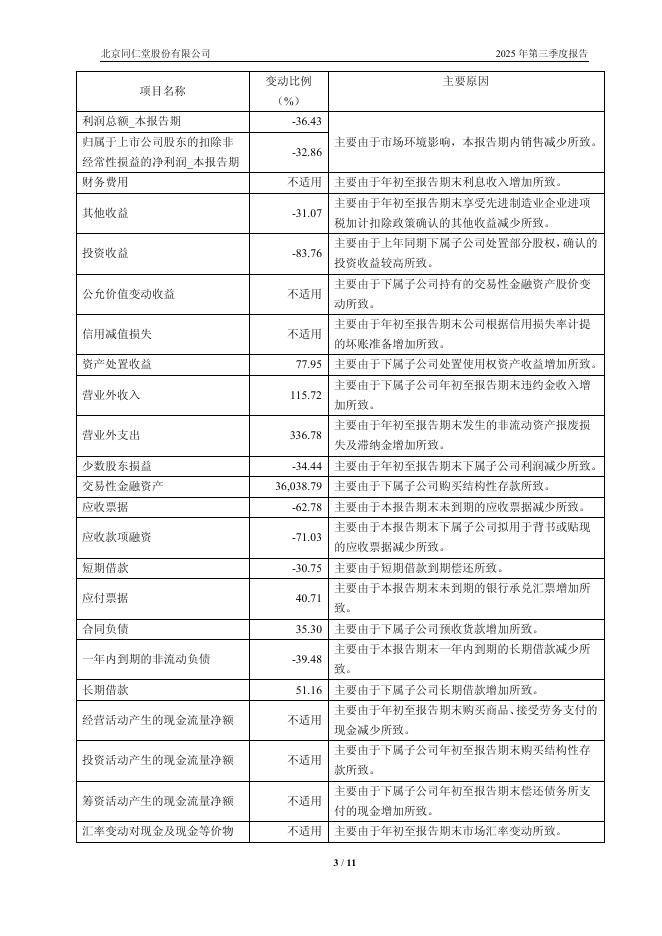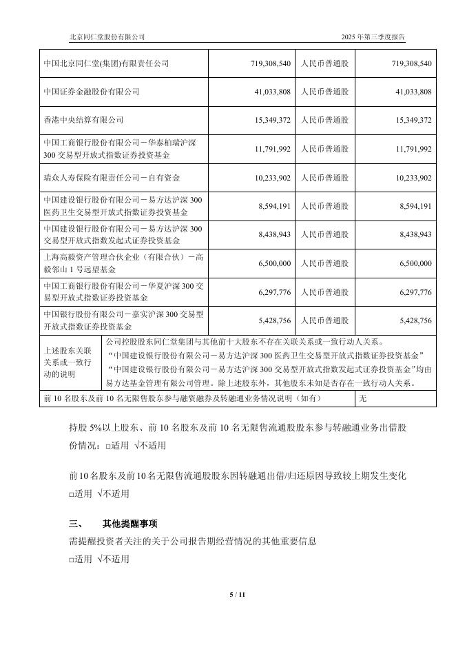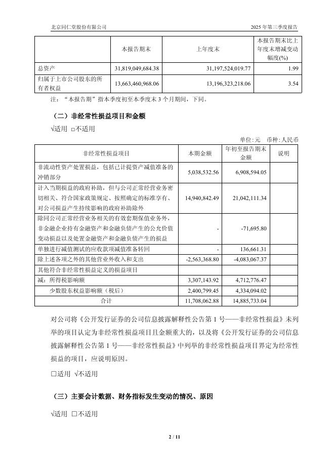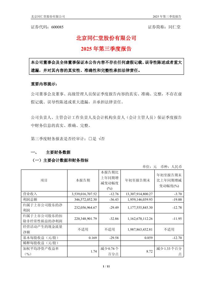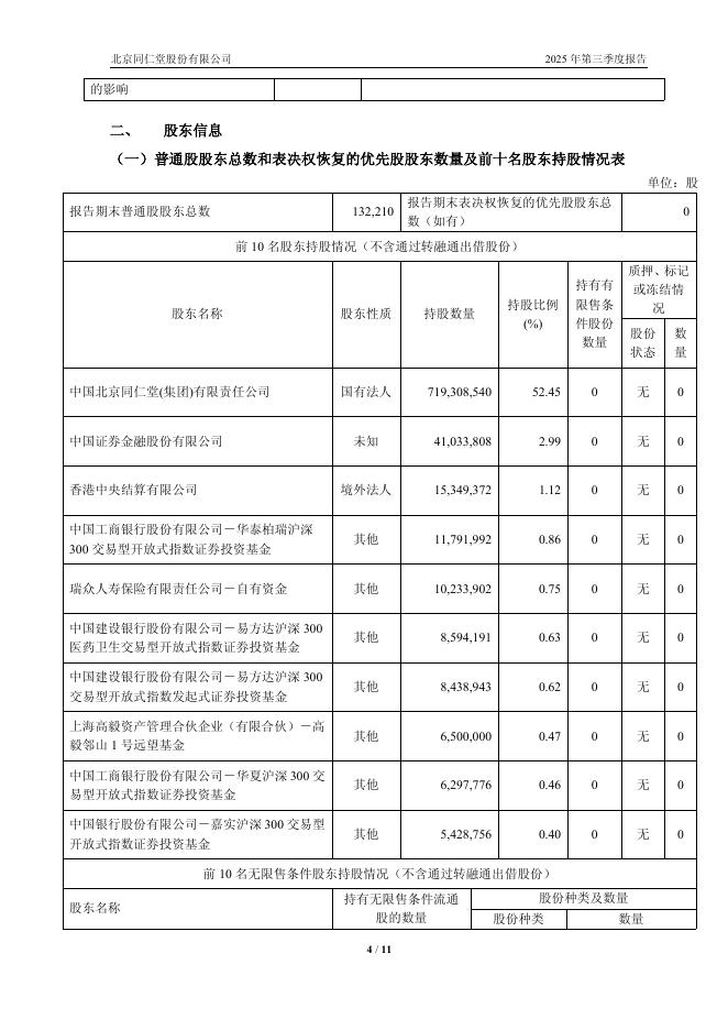 600085-同仁堂:同仁堂2025年第三季度报告.pdf