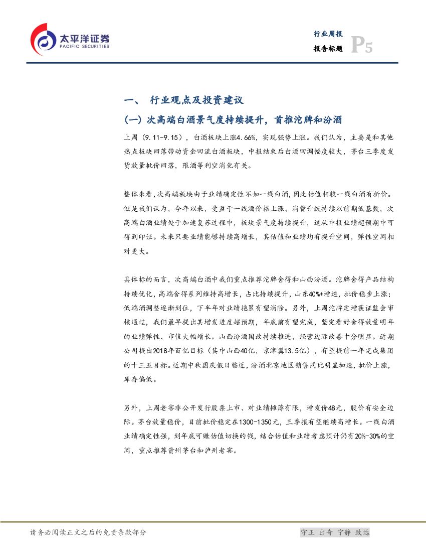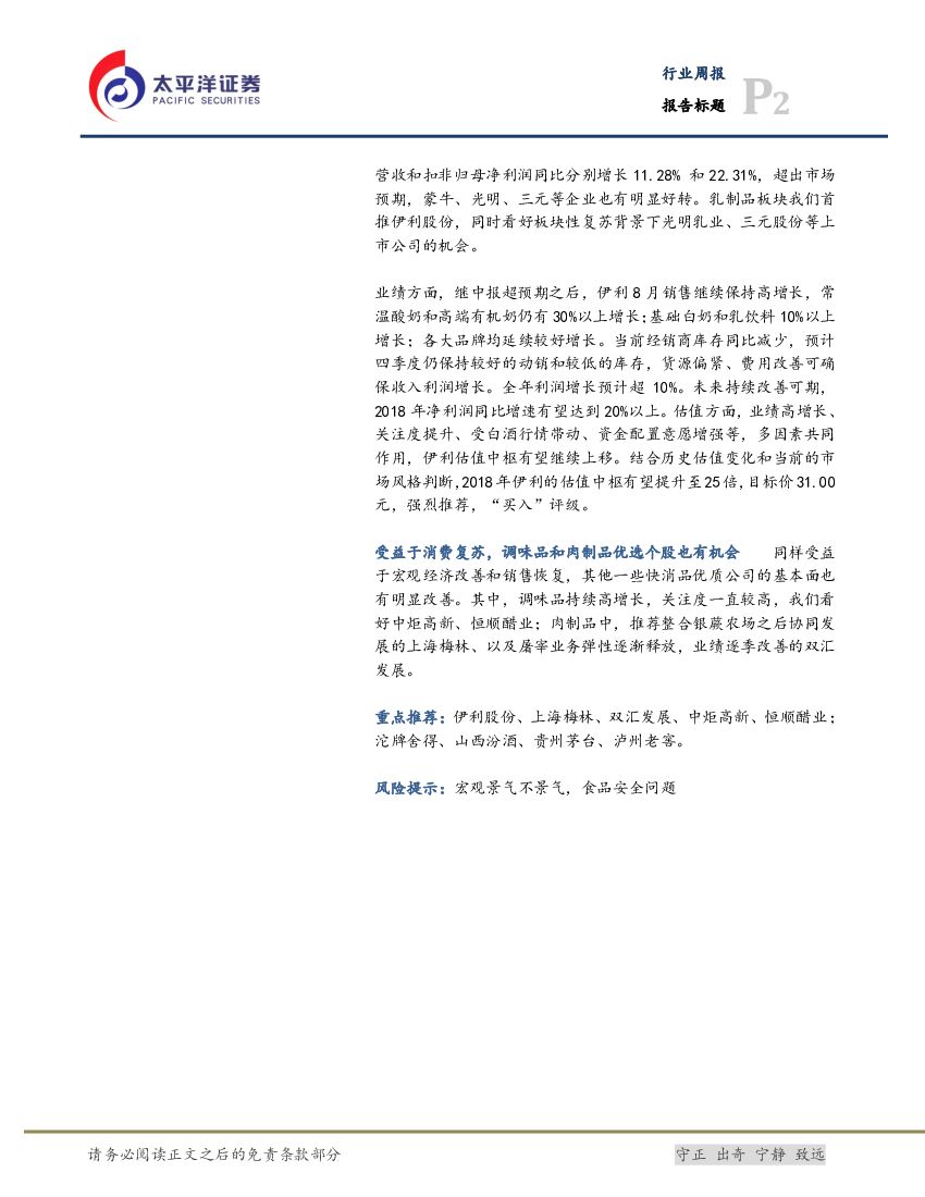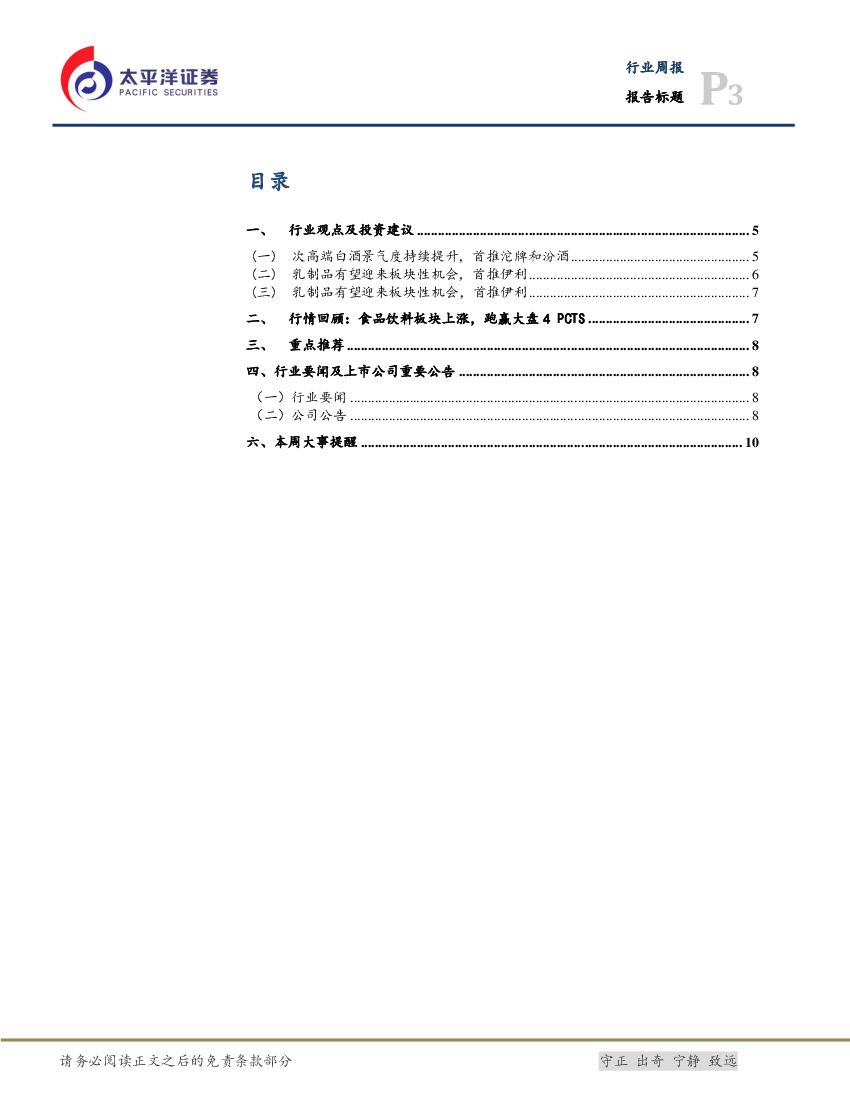 太平洋证券:食品饮料行业周报:继续看好白酒和乳制品板块性机会,首推沱牌、汾酒和伊利.pdf