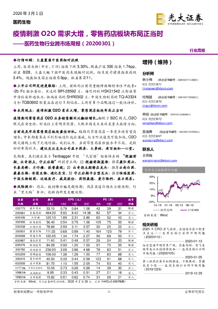 光大证券:医药生物行业跨市场周报:疫情刺激O2O需求大增,零售药店板块布局正当时.pdf