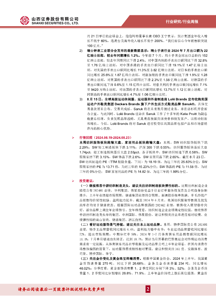 山西证券:纺织服装行业周报:Amer发布2024Q2业绩,大中华区连续4个季度营收增速超过40%.pdf