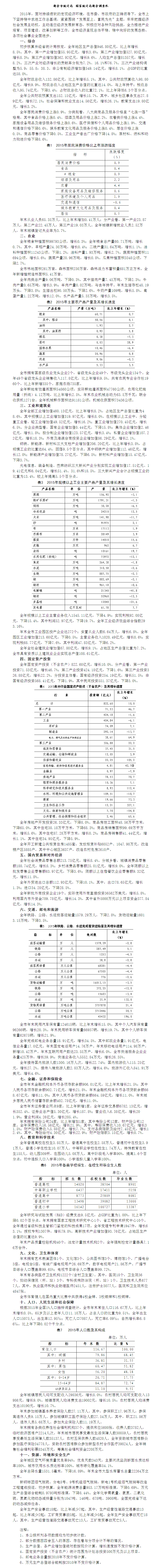 新余市2015年国民经济和社会发展统计公报