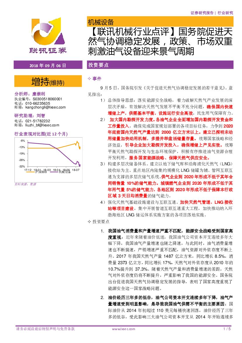 联讯证券:【联讯机械行业点评】国务院促进天然气协调稳定发展,政策、市场双重刺激油气设备迎来景气周期.pdf