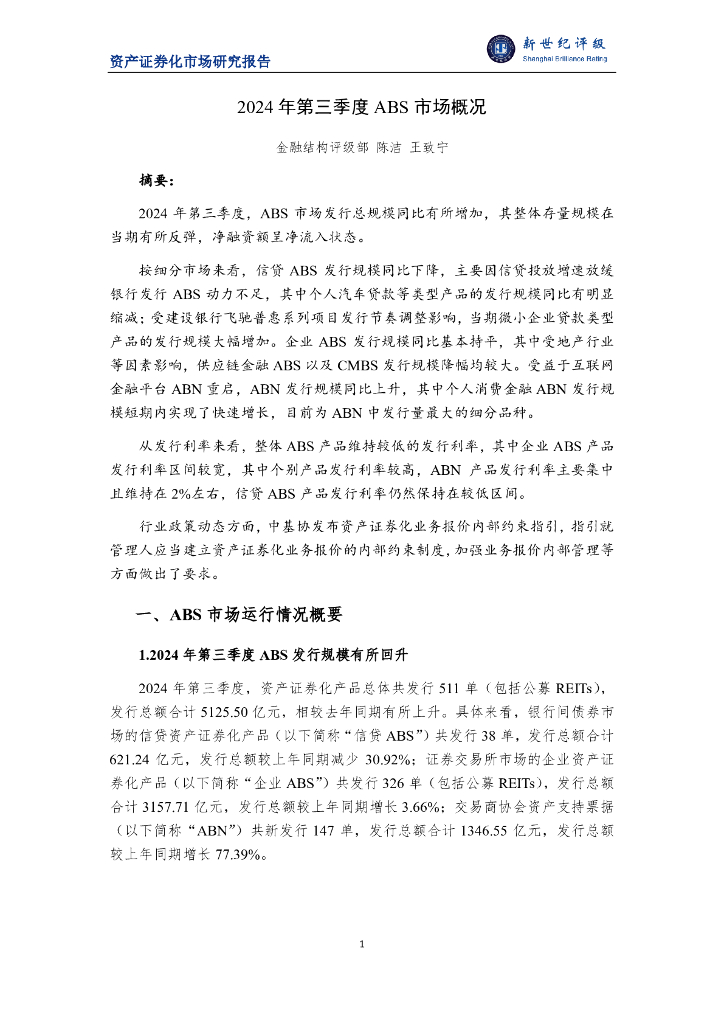 新世纪评级:2024年第三季度ABS市场概况报告.pdf