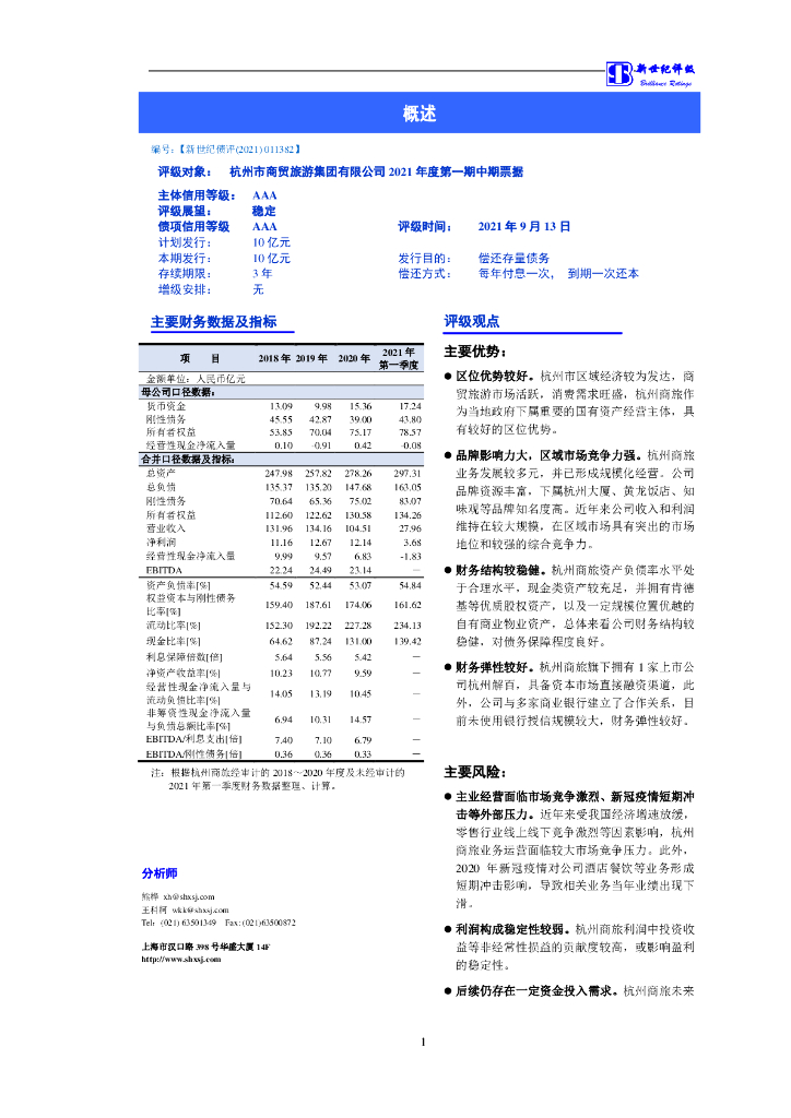 新世纪:杭州市商贸旅游集团有限公司信用评级报告.pdf