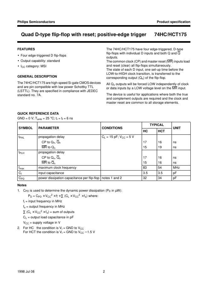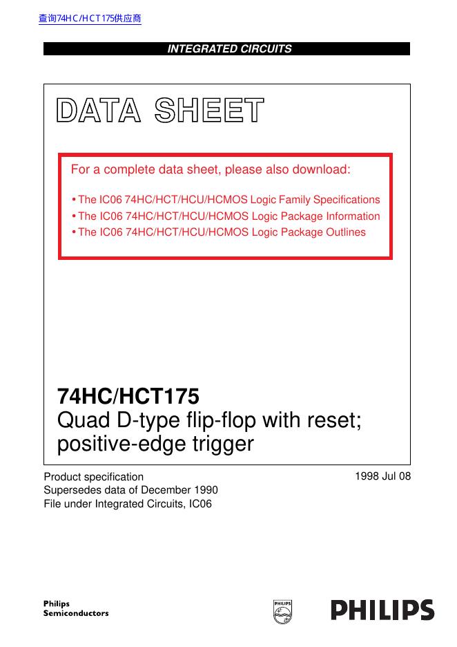 PHILIPS 74HC/HCT175 Quad D-type flip-flop with reset; positive-edge trigger 数据手册.pdf