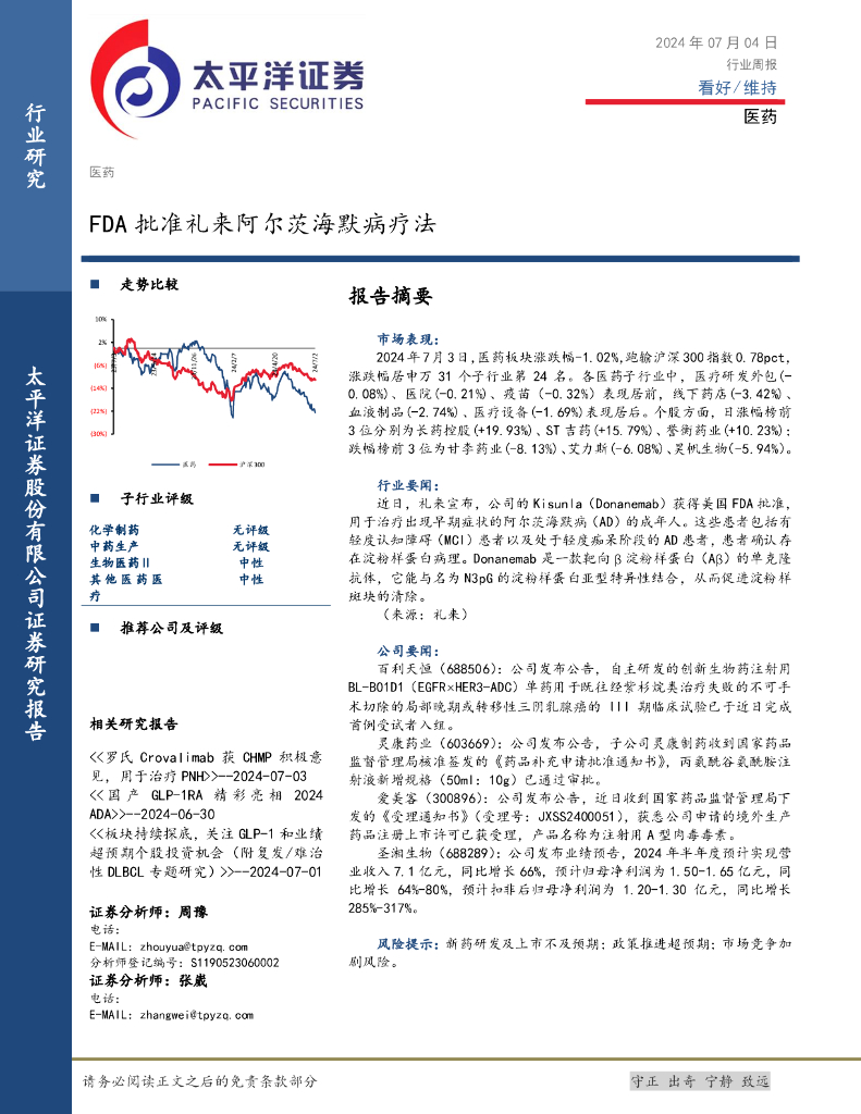 太平洋证券:医药行业周报:FDA批准礼来阿尔茨海默病疗法.pdf