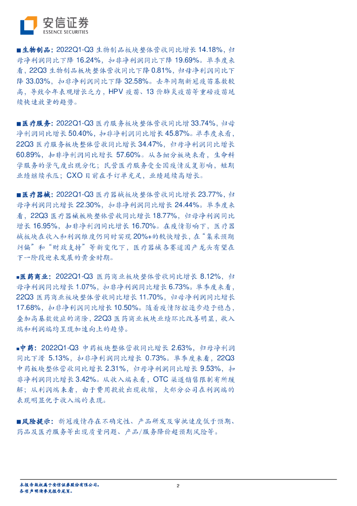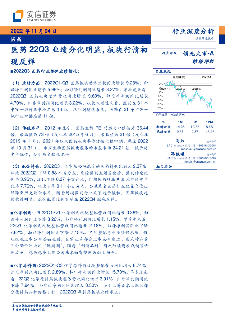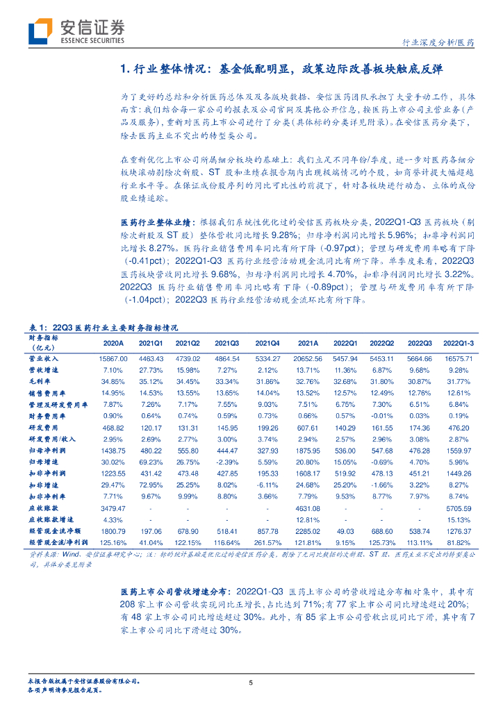 安信证券:医药行业深度分析:医药22Q3业绩分化明显,板块行情初现反弹.pdf