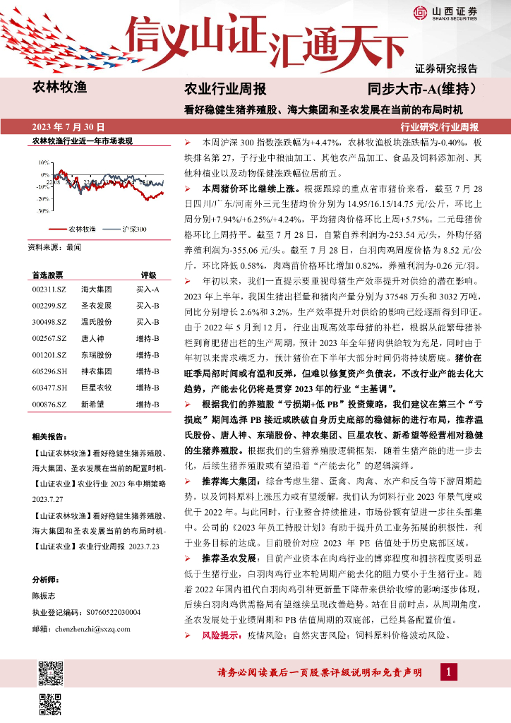山西证券:农业行业周报:看好稳健生猪养殖股、海大集团和圣农发展在当前的布局时机.pdf