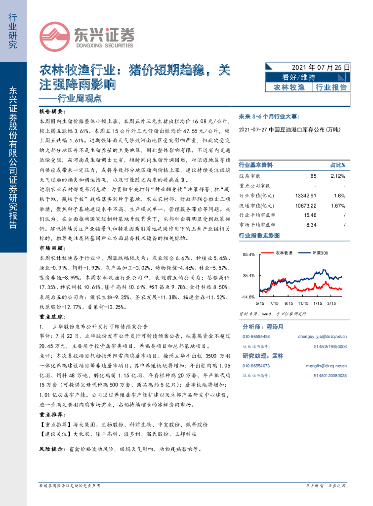 东兴证券:农林牧渔行业周观点:猪价短期趋稳,关注强降雨影响.pdf