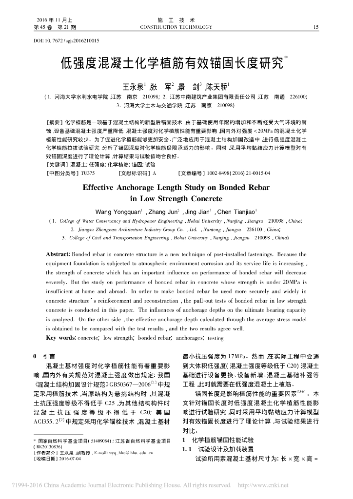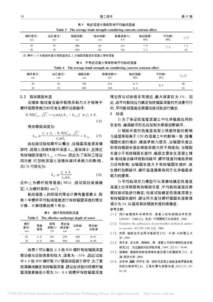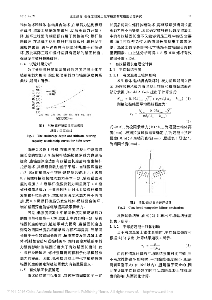 低强度混凝土化学植筋有效锚固长度研究.pdf