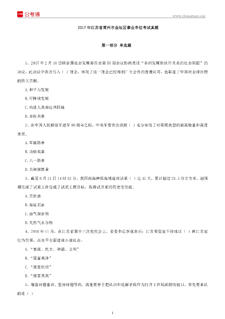 2017年江苏省常州市金坛区事业单位考试真题.pdf