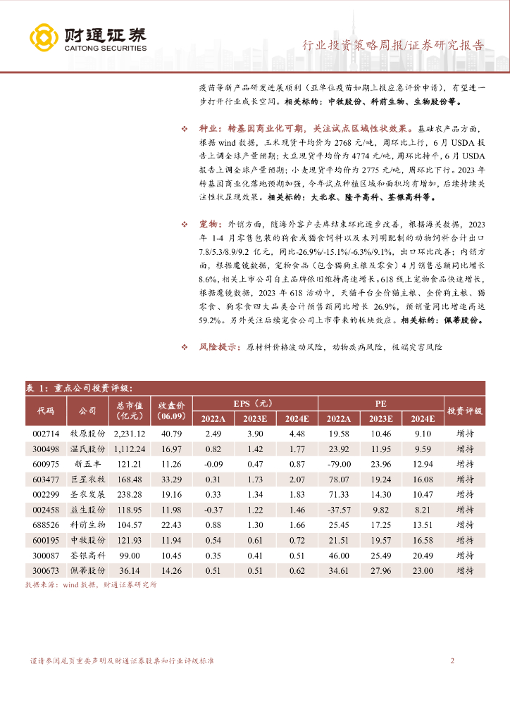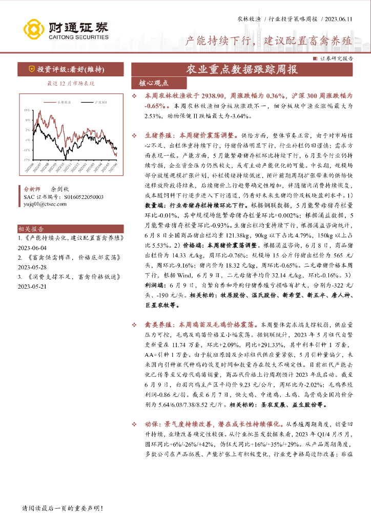 财通证券:农业重点数据跟踪周报:产能持续下行,建议配置畜禽养殖.pdf