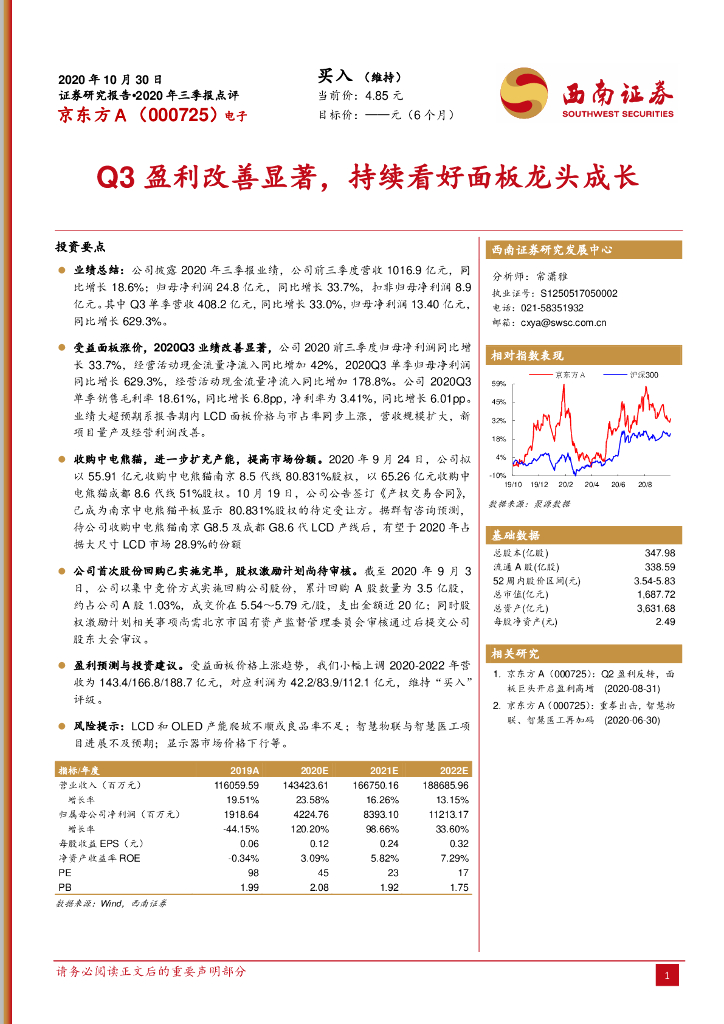 西南证券:京东方A(000725)-Q3盈利改善显著,持续看好面板龙头成长.pdf