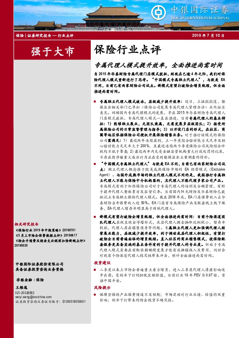 中银国际:保险行业点评:专属代理人模式提升效率,全面推进尚需时间.pdf